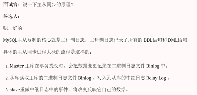- Master 主库在事务提交时,会把数据变更记录在二进制日志文件 Binlog 中。