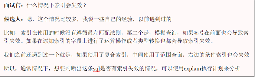 - 如果返回的列中没有创建索引,有可能会触发回表查询,尽量避免使用select *
