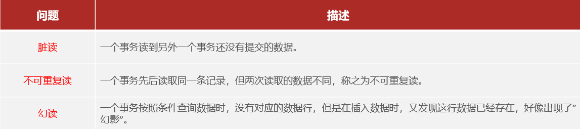 - 隔离性(Isolation):数据库系统提供的隔离机制,保证事务在不受外部并发操作影响的独立环境下运行。