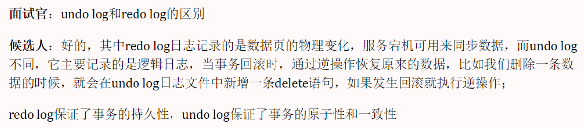 - redo log保证了事务的持久性,undo log保证了事务的原子性和一致性