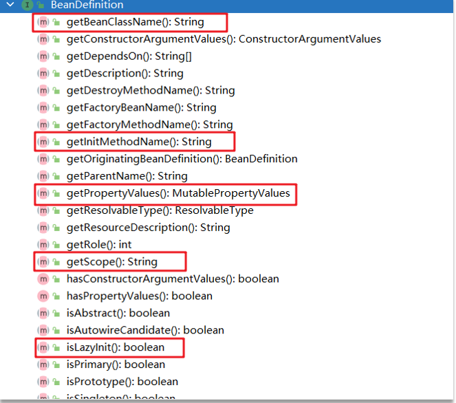 Spring容器在进行实例化时,会将xml配置的bean的信息封装成一个BeanDefinition对象,Spring根据BeanDefinition来创建Bean对象,里面有很多的属性用来描述Bean