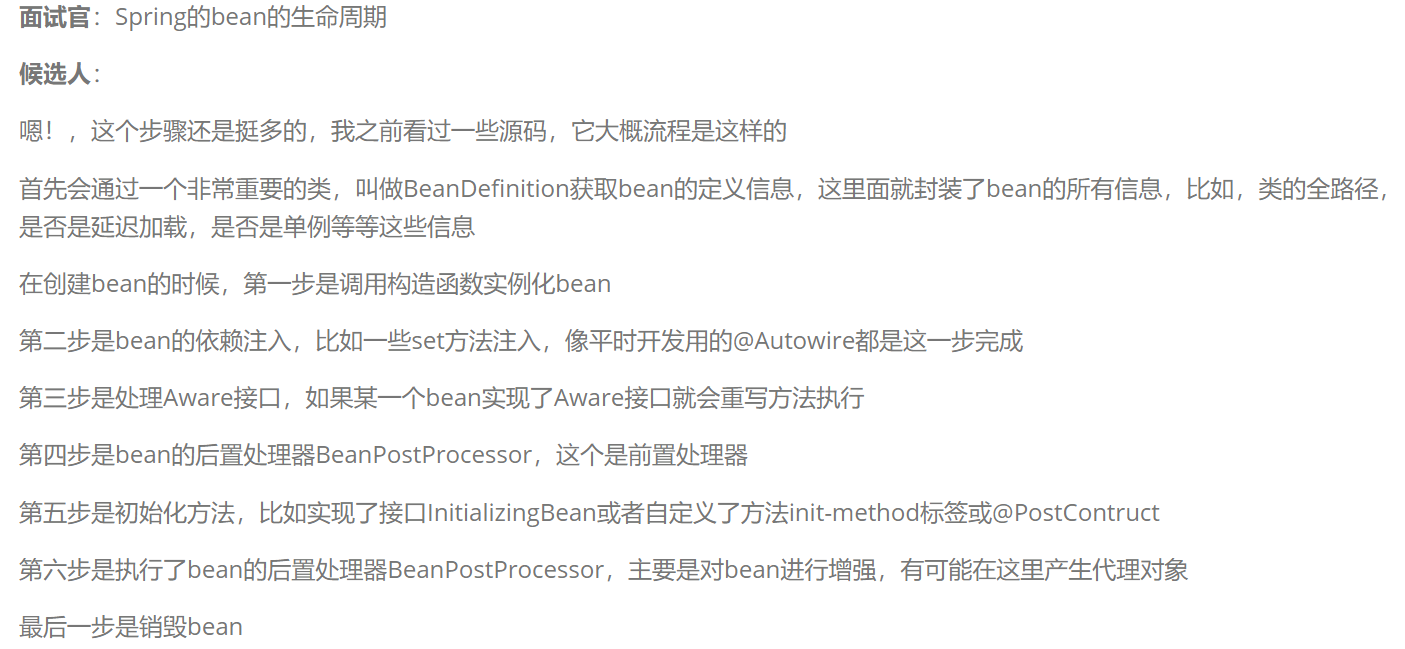 - 调用构造函数实例化bean:Spring通过反射机制调用Bean的构造函数或工厂方法来创建Bean的实例