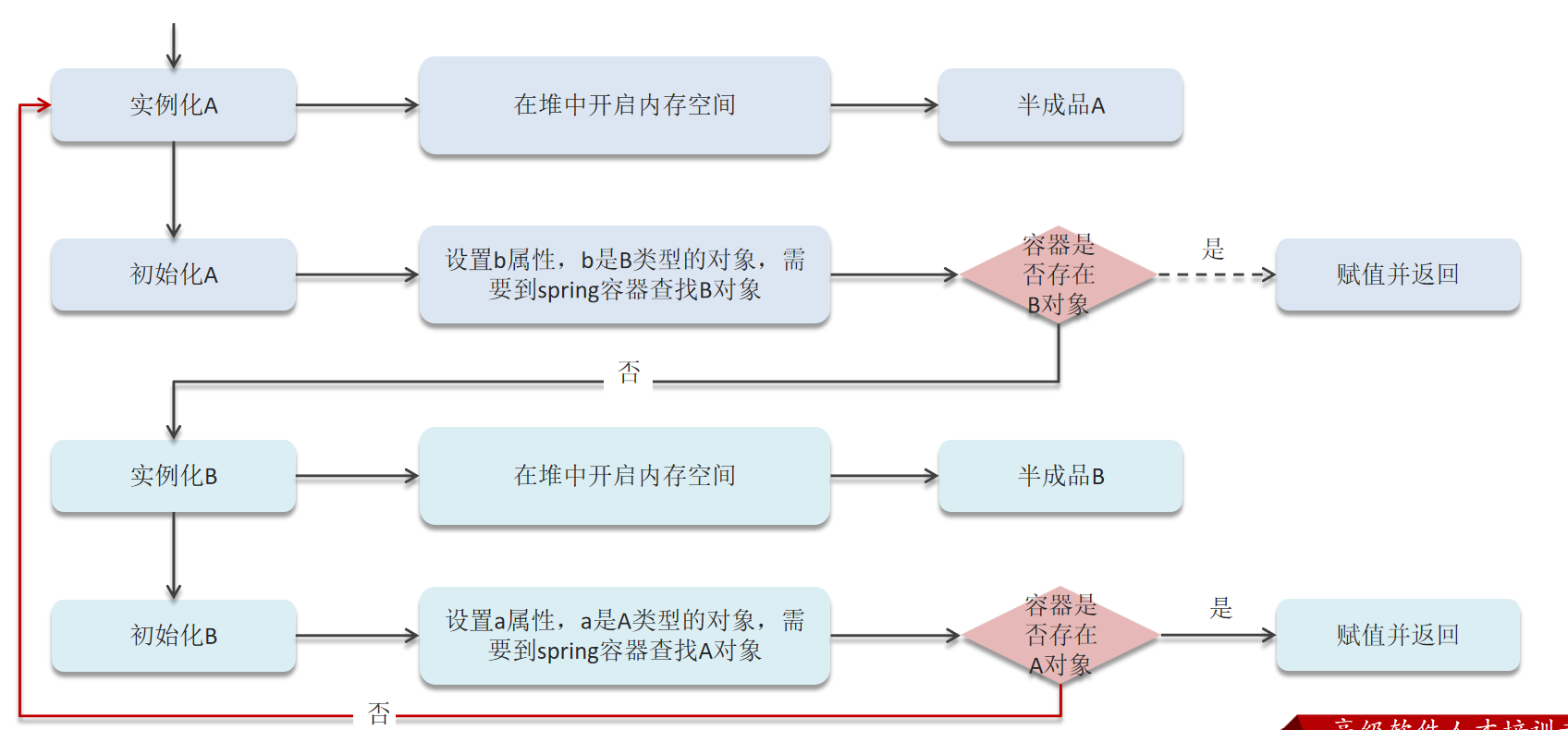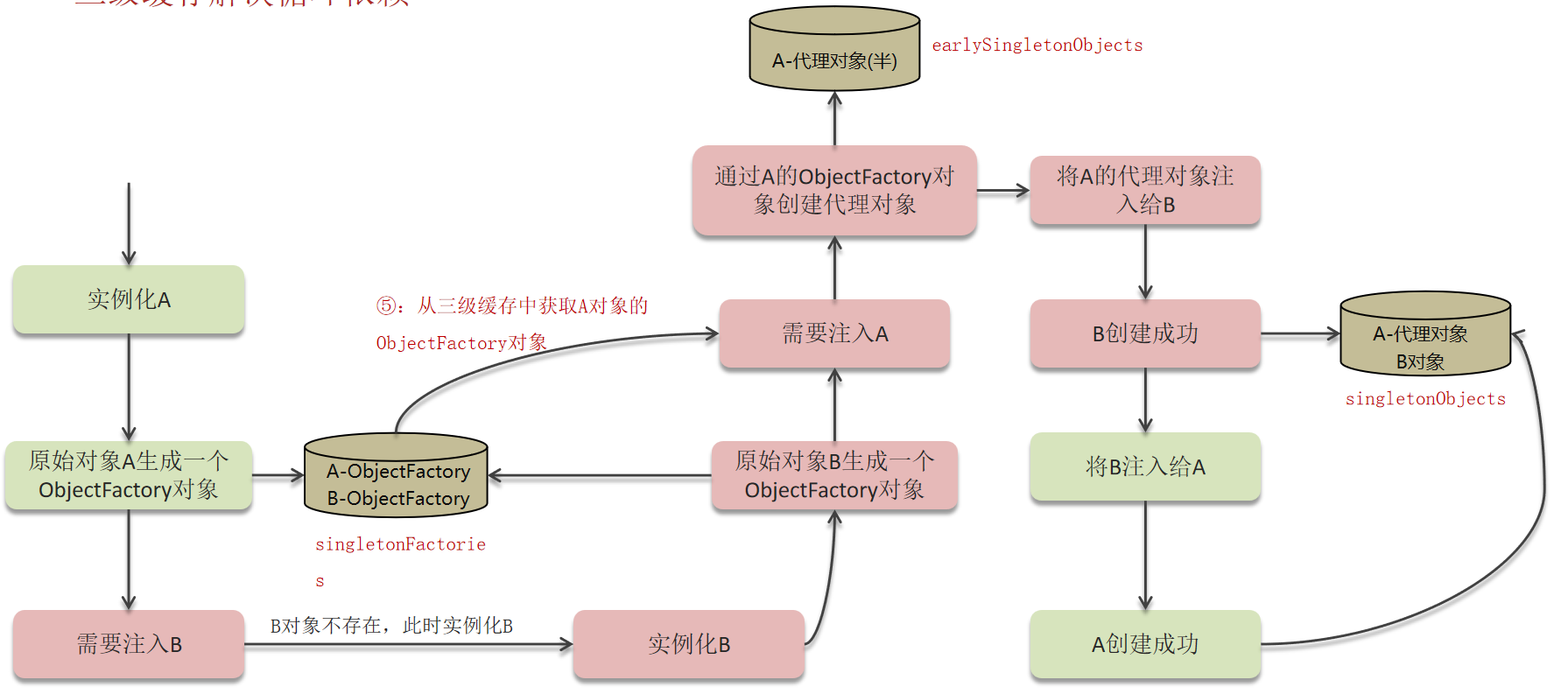 如果要想打破循环依赖, 就需要一个中间人的参与, 这个中间人就是二级缓存
