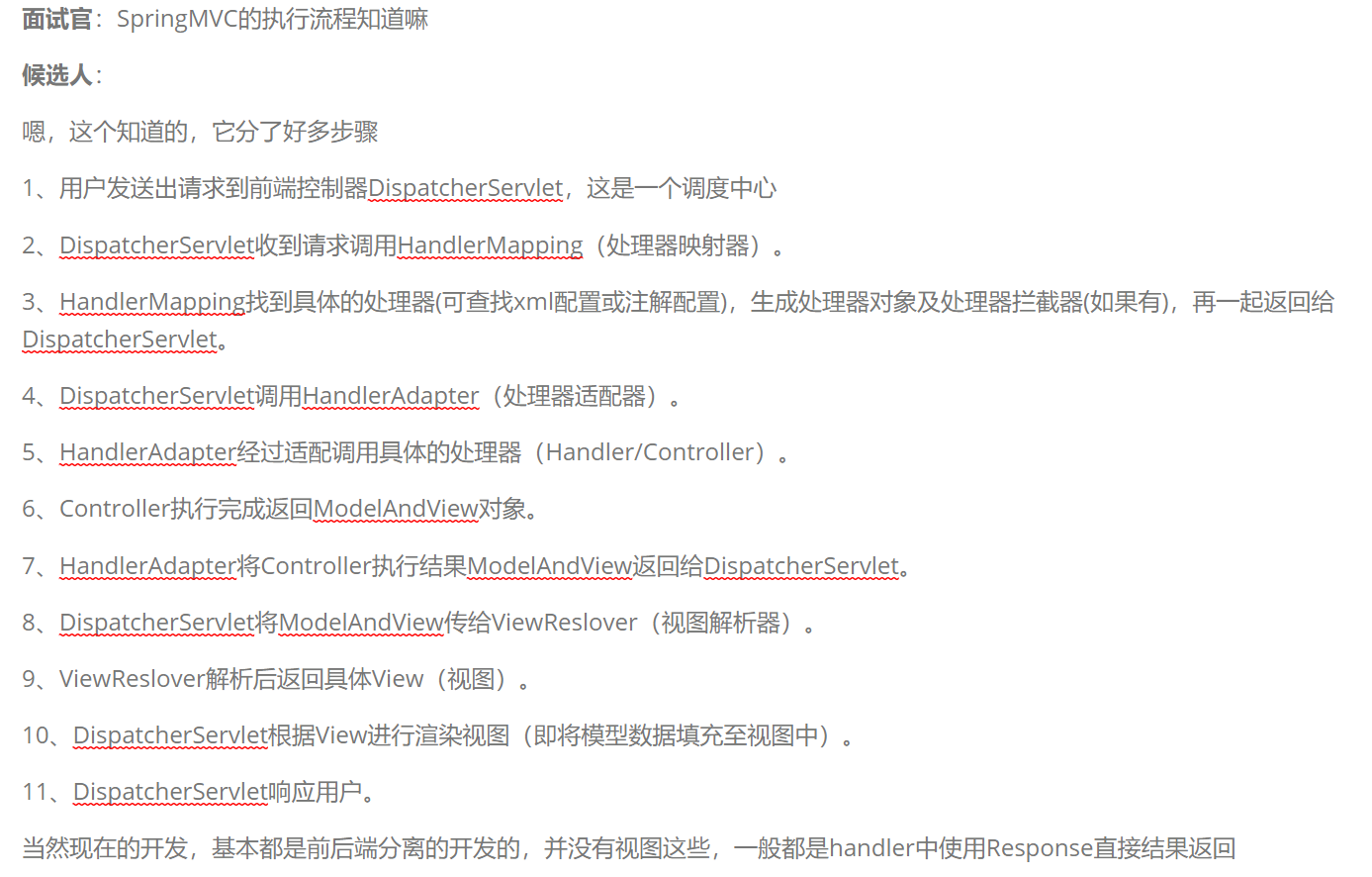 - HandlerAdapter将Controller执行结果ModelAndView返回给DispatcherServlet