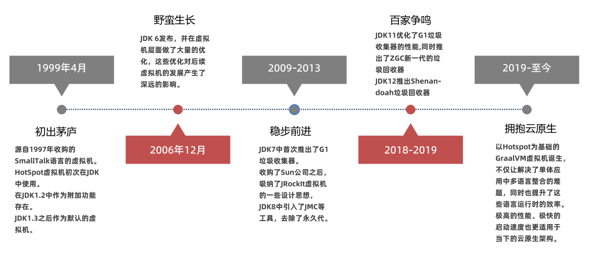 | HotSpot (Oracle JDK版) | Oracle | 所有版本 | 高(闭源) | 使用最广泛,稳定可靠,社区活跃 JIT支持 Oracle JDK默认虚拟机 | 默认 |
