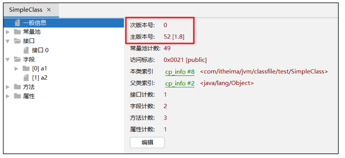 - 主副版本号指的是编译字节码文件的JDK版本号,主版本号用来标识大版本号,JDK1.0-1.1使用了 45.0-45.3,JDK1.2是46之后每升级一个大版本就加1;副版本号是当主版本号相同时作为区分不同 版本的标识,一般只需要关心主版本号