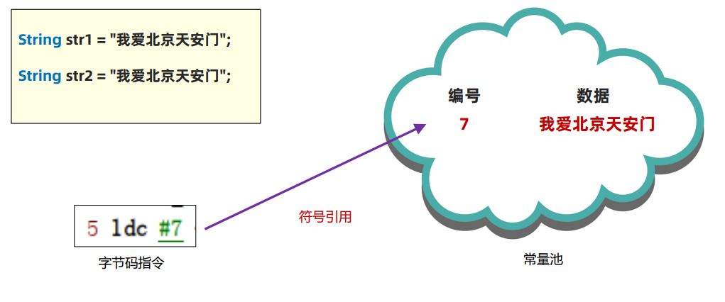 - 字节码文件中常量池的作用:避免相同的内容重复定义,节省空间