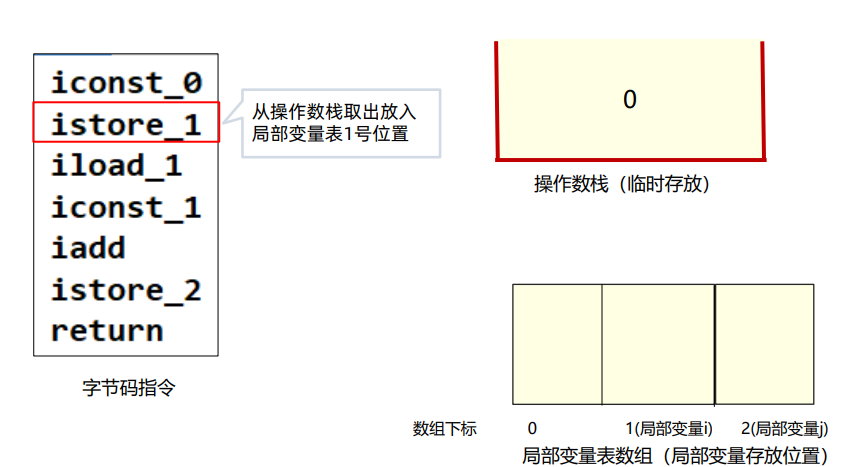 - istore_1: 从操作数栈取出放入 局部变量表1号位置