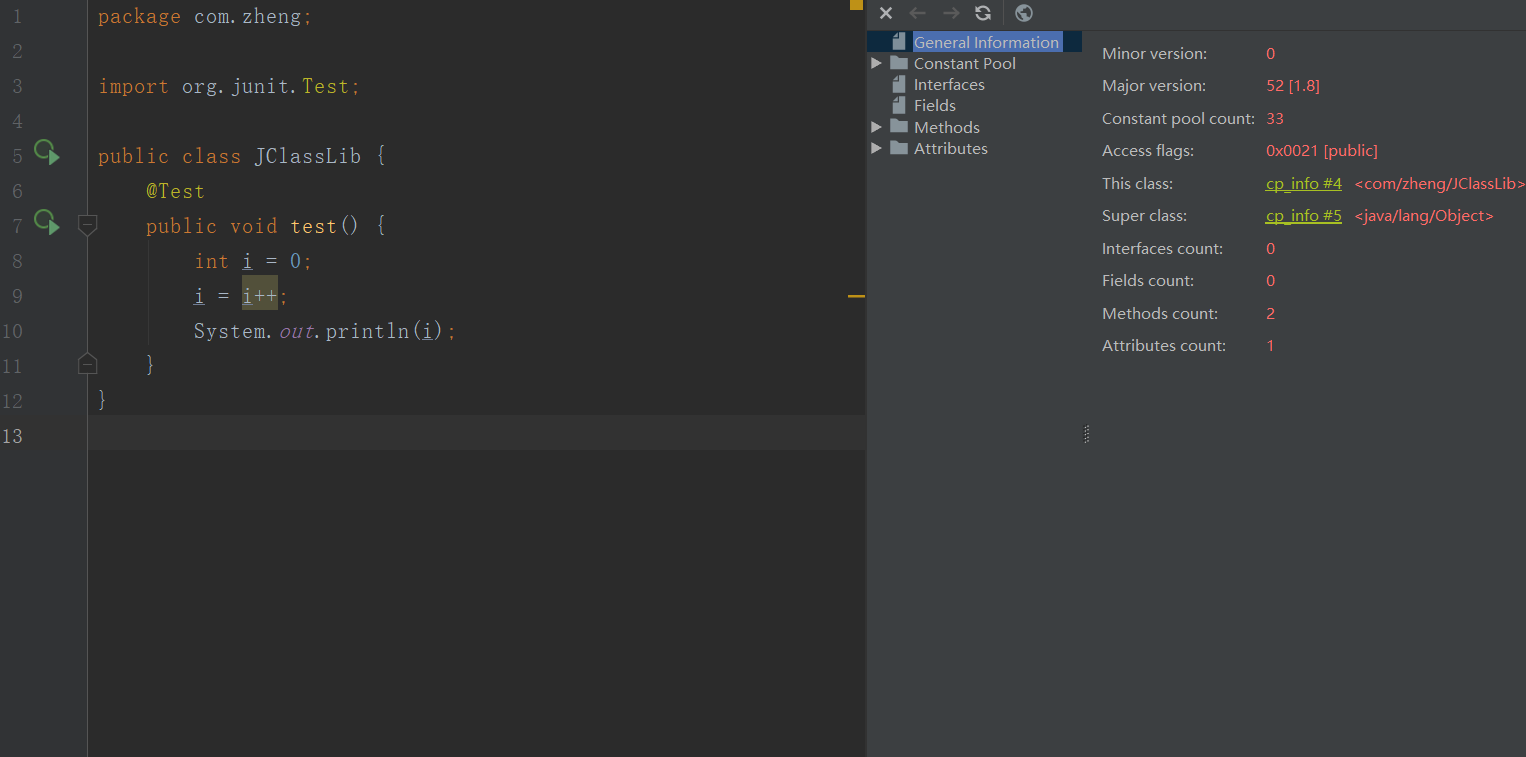 jclasslib也有Idea插件版本,建议开发时使用Idea插件版本,可以在代码编译之后实时看到字节码 文件内容