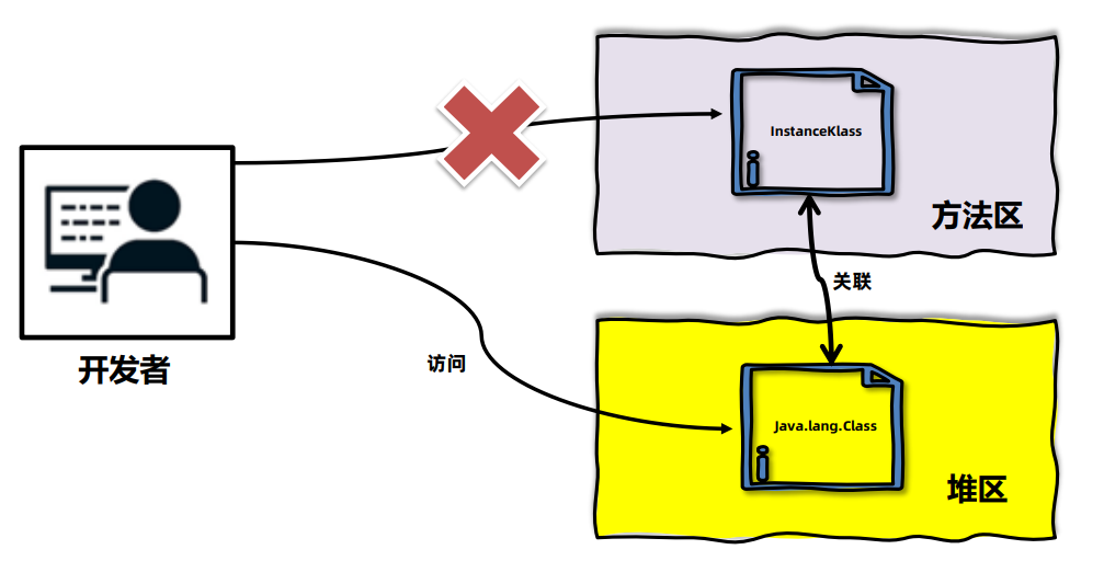 对于开发者来说,只需要访问堆中的Class对象而不需要访问方法区中所有信息,这样Java虚拟机就能很好地控制开发者访问数据的范围