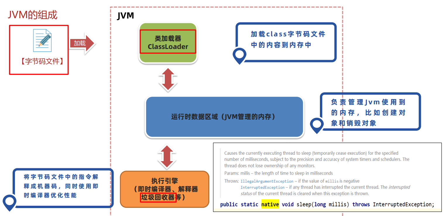 JVM 包含内存管理、解释执行虚拟机指令、即时编译三大功能。