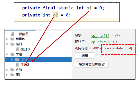 - 字节码文件中常量池的作用:避免相同的内容重复定义,节省空间