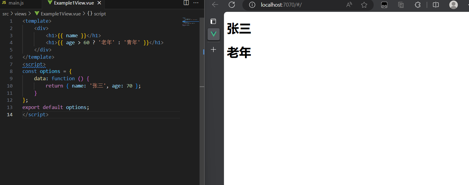 {{}}在 Vue 里称之为插值表达式,用来绑定 data 方法返回的对象属性,绑定的含义是数据发生变化时,页面显示会同步变化