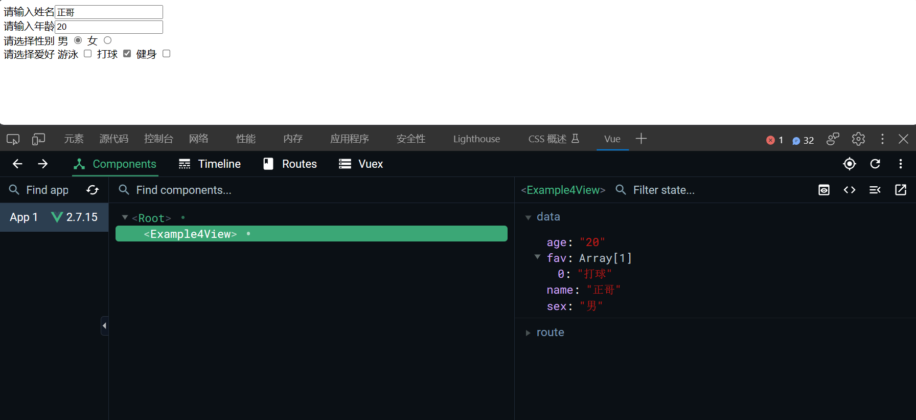 - 输入框和选择框都可以通过v-model实现数据的双向绑定