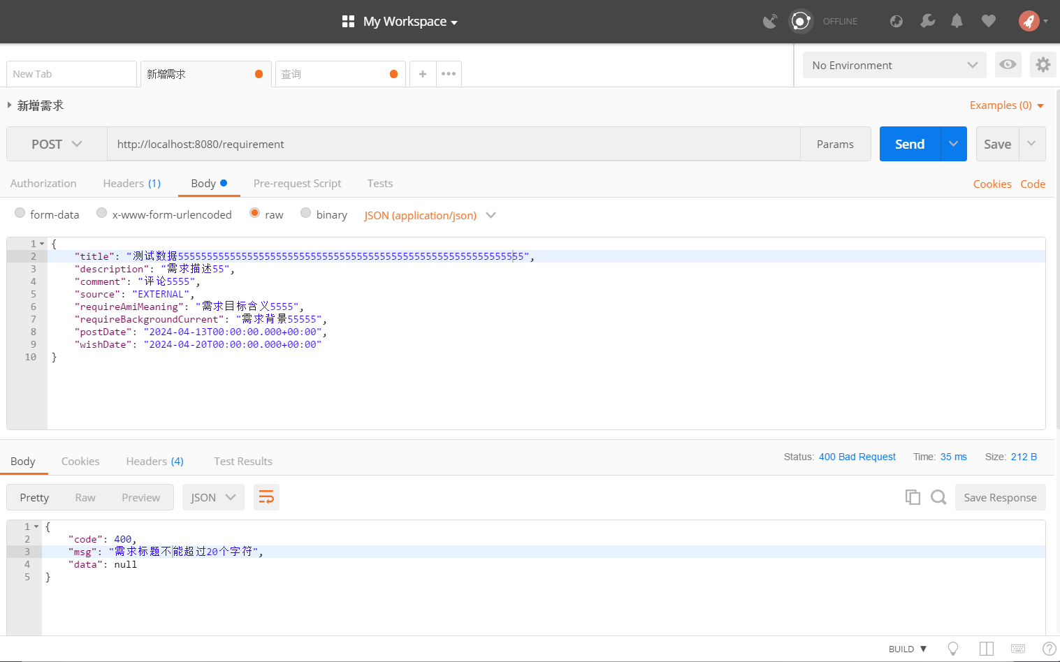 标题长度超过20个字符,输出需求标题不能超过20个字符,符合要求