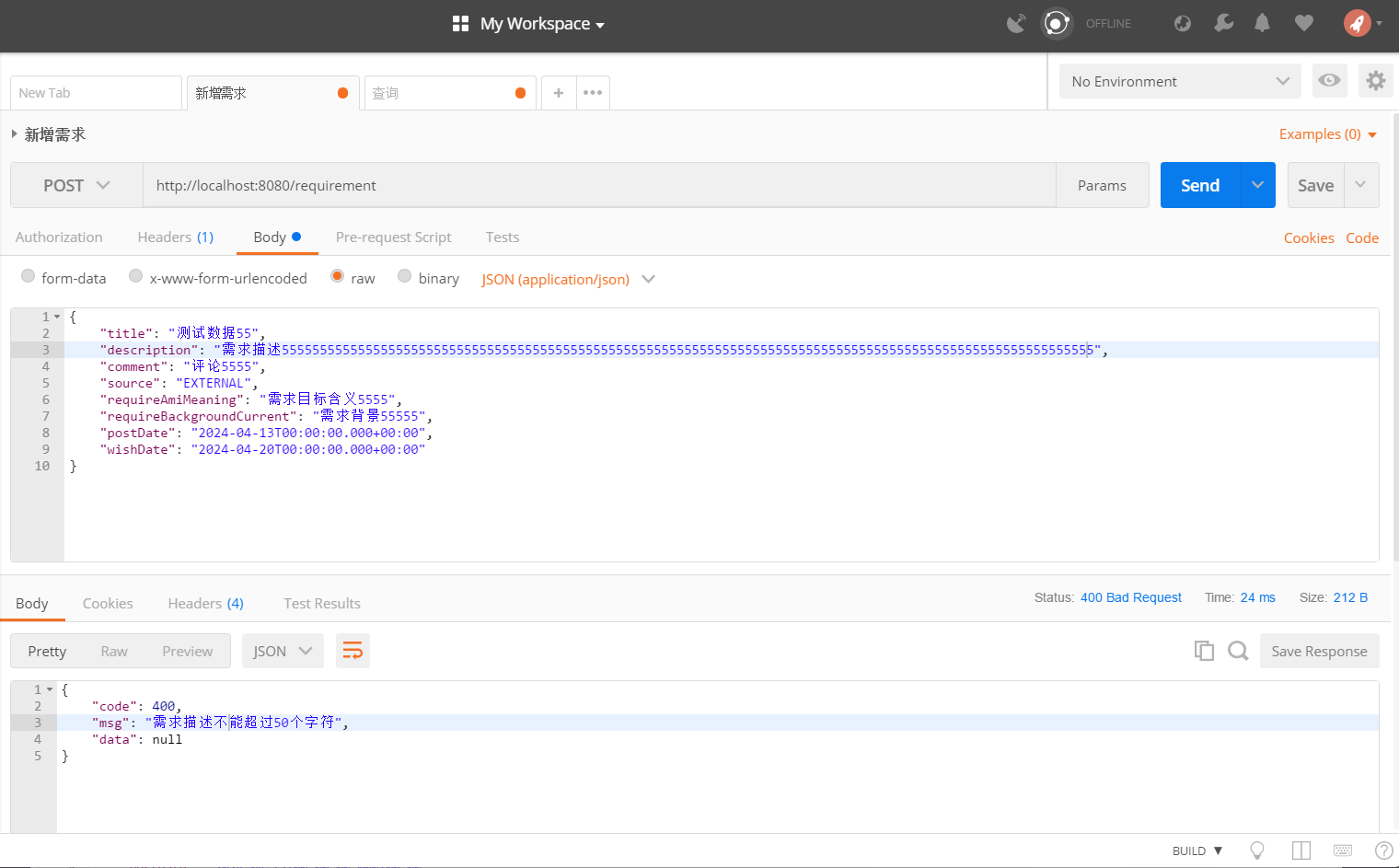 需求描述超过50个字符,提示需求描述不能超过50个字符